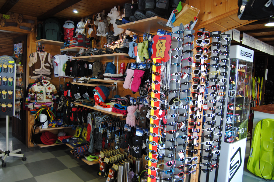 En las estanterías, ropa para el hogar, ropa de bebé y accesorios (peluches, mochilas de peluche, zapatillas de cuero, gafas, camisetas para niños, zapatos de montaña, botas, sombreros, máscaras... Ofrecemos una amplia sección de recuerdos: tazas, cuencos, bolas de nieve, dados de colección, cuchillos de la marca Opinel, imanes, juguetes, vajillas y accesorios para la mesa, campanas decoradas, peluches, bastones de montaña,postales, bebidas y helados al gusto. |